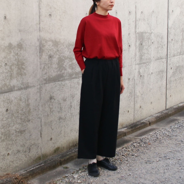 Wクロスの新しいパンツをご紹介します。 しなやかでハリ感がありストレッチ性もあるWクロスは 快適な着心地で軽くシワになりにくいイージーケア素材。今まではテーパードやコクーンなどがございましたがこちらはストレートシルエットでマニッシュな雰囲気のある2タックセミワイドパンツです。 デイリーにオフィスカジュアルに探されている方が最近増えているように感じて、元々Wクロスの生地はとても好評なのでそれに加えて細すぎず太すぎずの、ちょうどいいシルエットだなと感じました。 着丈はフルレングスです。 トップスをタックインする際もスリムなシルエットよりストレートやワイドの方がバランスがとりやすいので上着も選びやすいパンツです。 サイズはS/M展開。ぜひおすすめです Made in JAPAN Fabric:ポリエステル95% ポリウレタン5% ご家庭でのお洗濯が可能です。 size:S(ウエスト33cm 股上35cm 股下58cm わたり幅36cm 裾幅25cm) M(ウエスト34.5cm 股上36cm 股下60cm わたり幅37cm 裾幅25.5cm) 平置きによる計測 多少の誤差はご了承くださいませ。 [着用スタッフ] 171cm 60kg 足のサイズ25cm Mサイズ着用 [注意点] ご購入の際は必ずサイト下記に記載している「特定商取引法に基づき表記」に記載している事項をご理解・ご納得の上購入いただきますよう宜しくお願い致します。 当店のWEB SHOPは店舗との在庫共有しているため、WEBの在庫の反映に時差が生じる場合がございます。 その際は誠に申し訳ございませんが、ご購入キャンセルとなる場合がございます。 ご了承いただきますよう何卒宜しくお願い申し上げます。