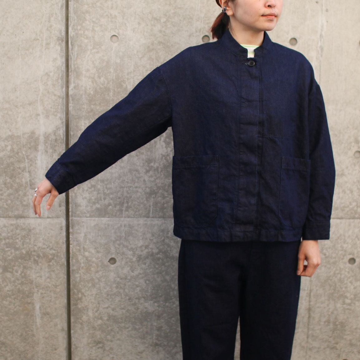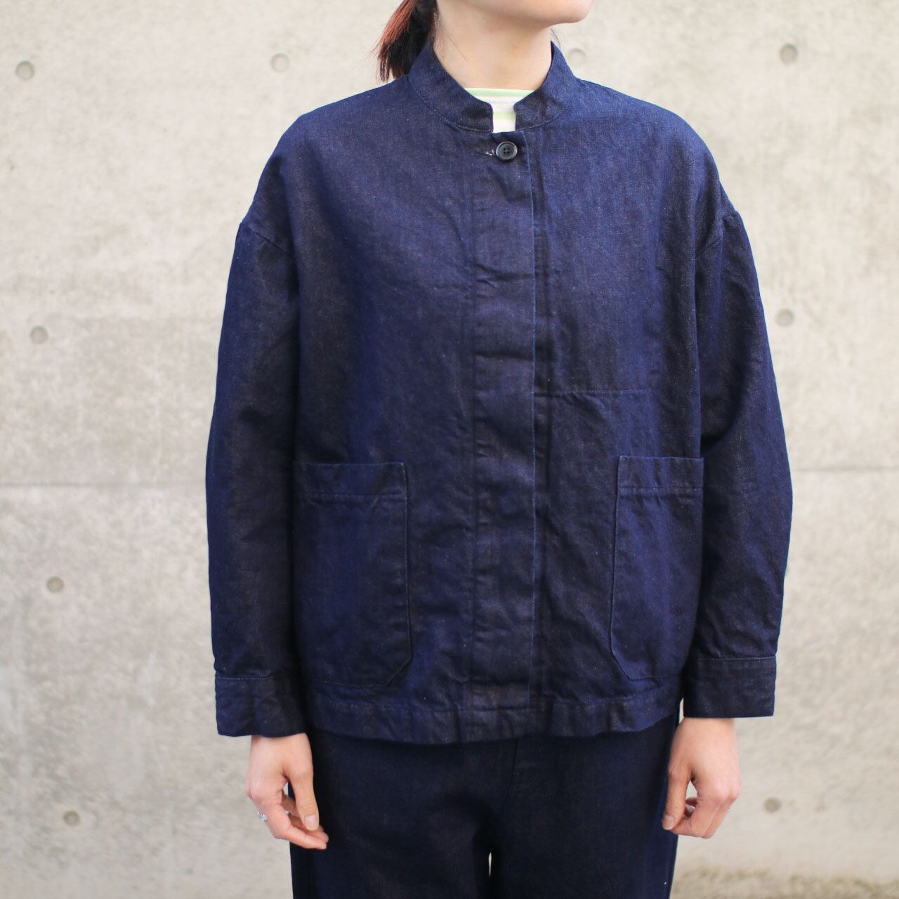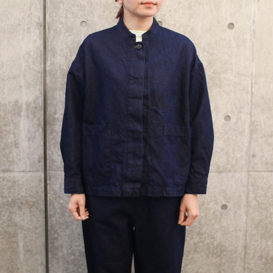 こちらは綿麻デニム、マオカラーワークジャケットです。