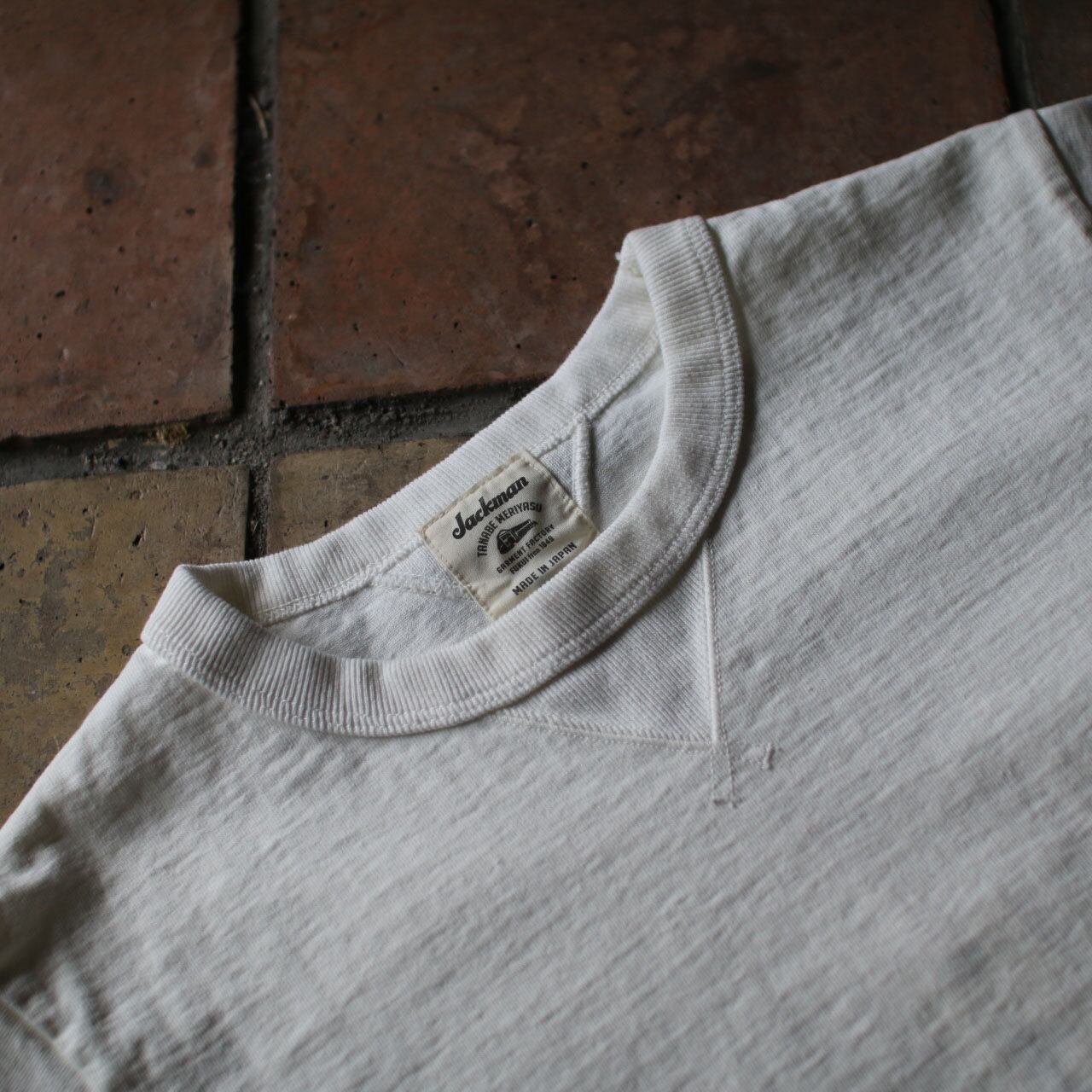 アメリカ産のコットンを使用して吊り編み機で限界まで度目を詰めて編み立てた約11.5オンスの極厚素材「ドツメ天竺」を使用したリブTシャツです。身生地との相性を考えスウエット並みのしっかりした厚みのリブを使用し全体のバランスを整えました。透けない、身体のラインがわかりにくい、汗染みが目立ちにくいといった見栄えの安心感に加え、リブの締まりによってふくらみのある半袖スウエットのようなフォルムになり、生地と肌の間に隙間が生まれることから春から夏にかけて快適に着用できます。