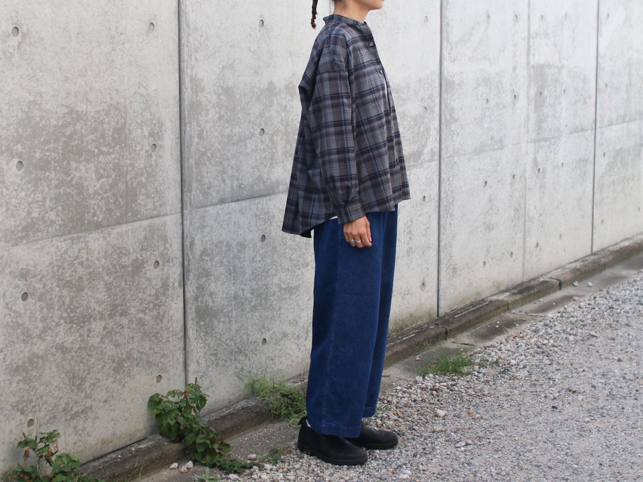 チェックって色使いが多いので合わせるボトムスがシンプルだったり、ベーシックになりますが、逆にシャツがこう落ち着いたトーンだと他で色を使える!とも思います。