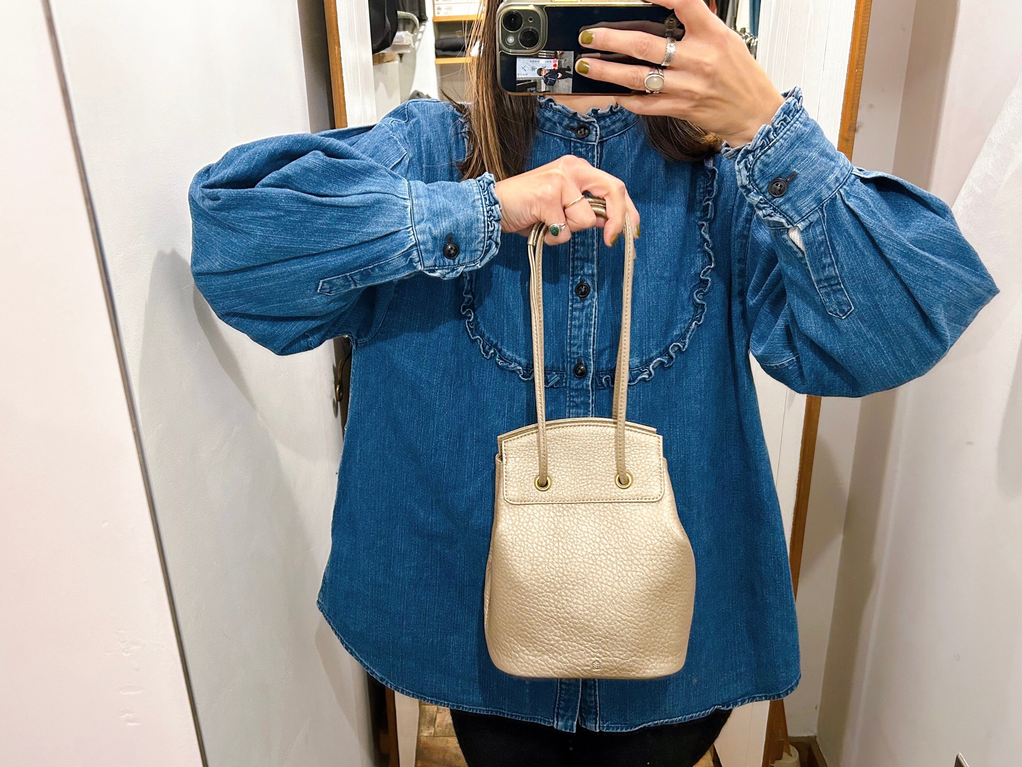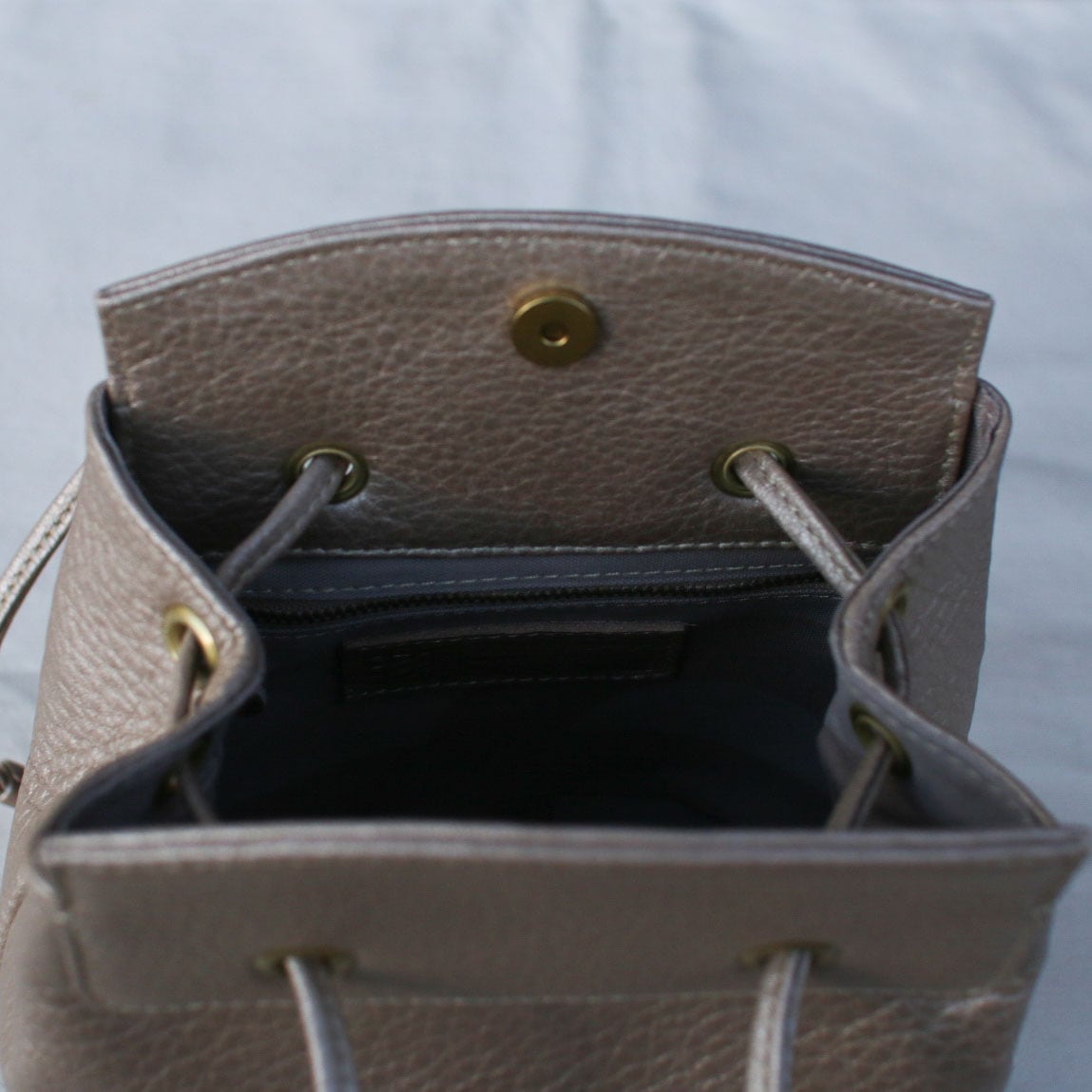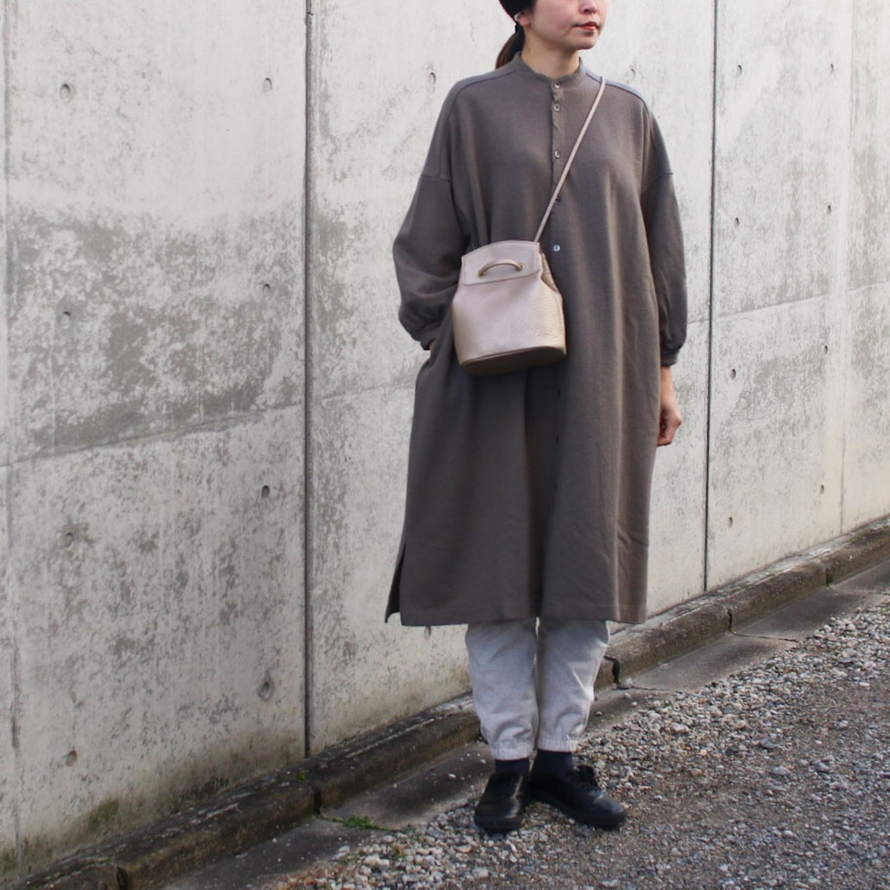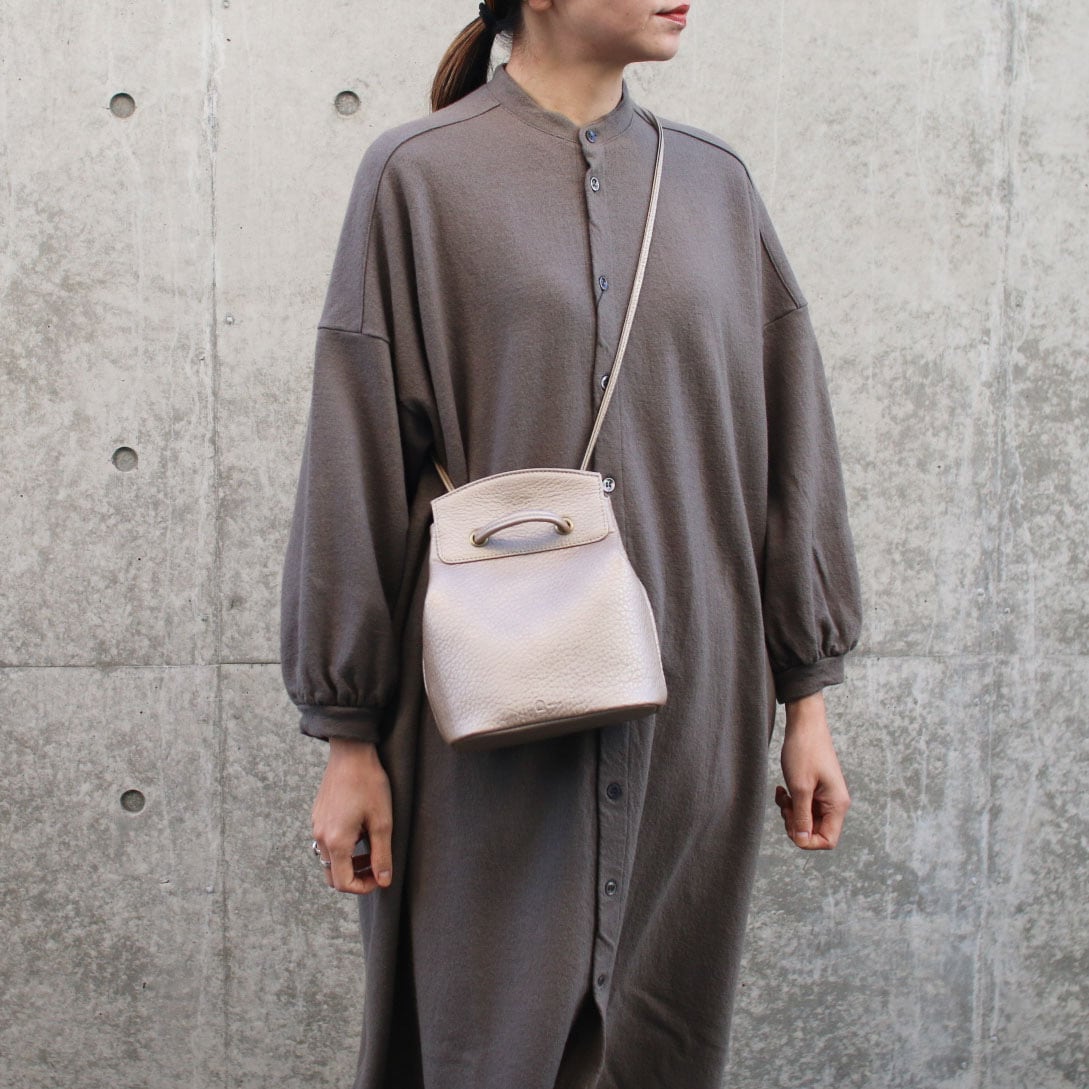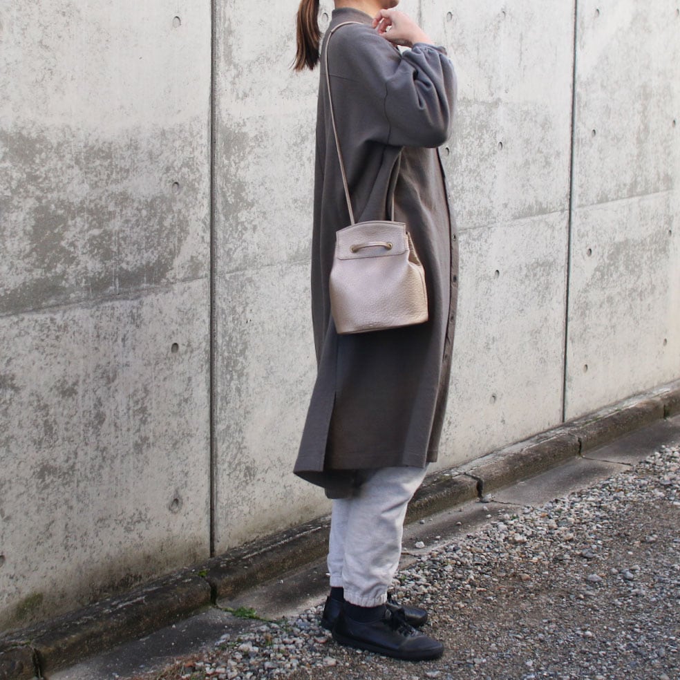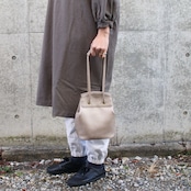 ドローストリングバケットバッグです。開口部の内側にはマグネットを備えておりラフに使っていただいても安心な仕様になっています。