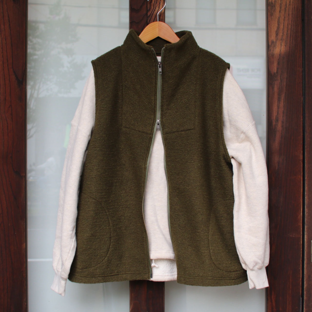 ダブルジップでレイヤードに便利。軽い着心地ですがウール混でしっかりあたたかく、一枚でもコートのインナーにも活躍してくれます。お色展開が合わせやすいカラーを意識しました。カットソーやシャツ、スウェットの上から重ね着としてはもちろん、アウターのインナーベストとしても◎