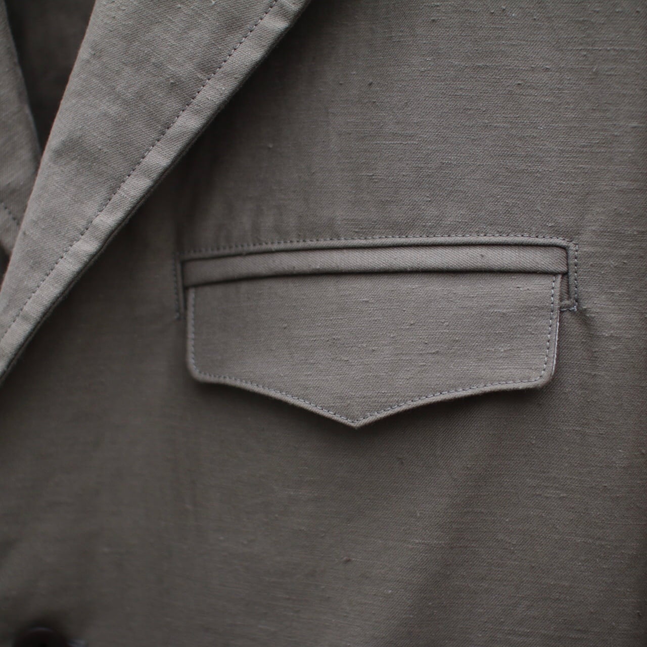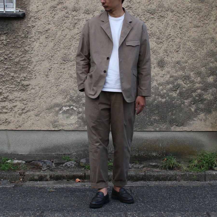 乾燥感のあるアメリカ、オーストラリアの混合綿を使用、その原綿をカーディングする際、機械の調整でネップを作り、レピア織機で糸に強度を加えながら織ることで生地自体の強度を高めたバックネップ素材を使用したBN(バックネップ)ジャケットです。このバックネップ素材は表面に上品さを出すためシルケット加工をせず染色、ネップの凹凸を残しながら自然で上品な表情に仕上げました。またハリコシを出すために樹脂で硬仕上げを施し防風性の向上と洗濯による形状変化を抑える加工を加えました。デザインは1930年頃の野球選手やコミッショナーの間で流行ったややボリュームのある印象的な2ボタンテーラードジャケットをベースにジェッテンドアンドフラップポケット(雨蓋付き玉縁ポケット)を採用。サイドベンツも加えて特徴的なデザインにしました。ご祝儀袋が収まるサイズの山型の内ポケットやクラシカルな見返し仕立て、ベース型フラップポケットといった独自のディテールにこのジャケットならではの遊び心が詰まっています。