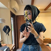 画像のようにお顔周りに巻くいても、スカーフのように首に巻いても、ヘアバンドやターバンのように巻いても良い、マルチに使えるヘアスカーフです。