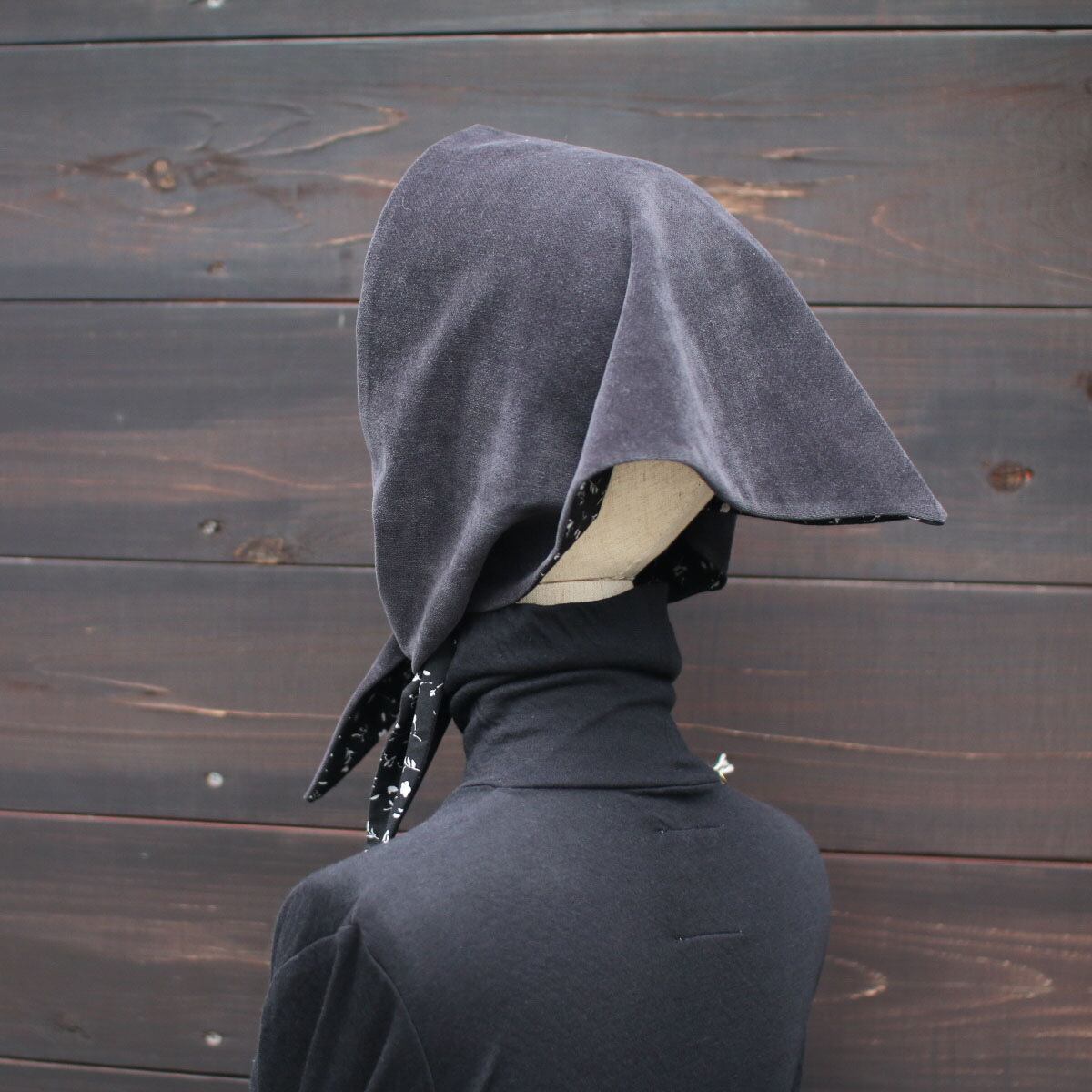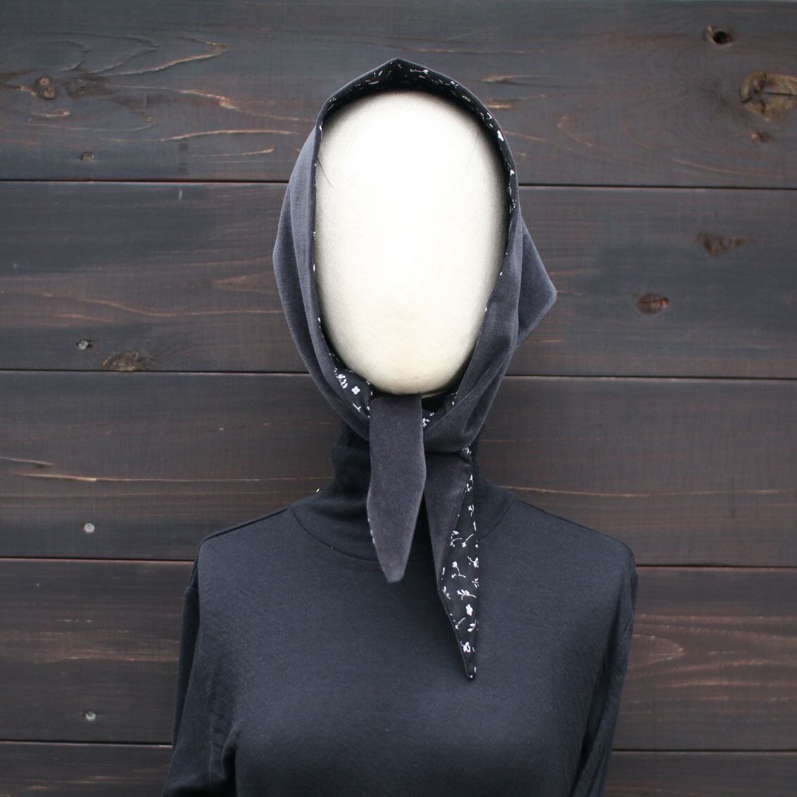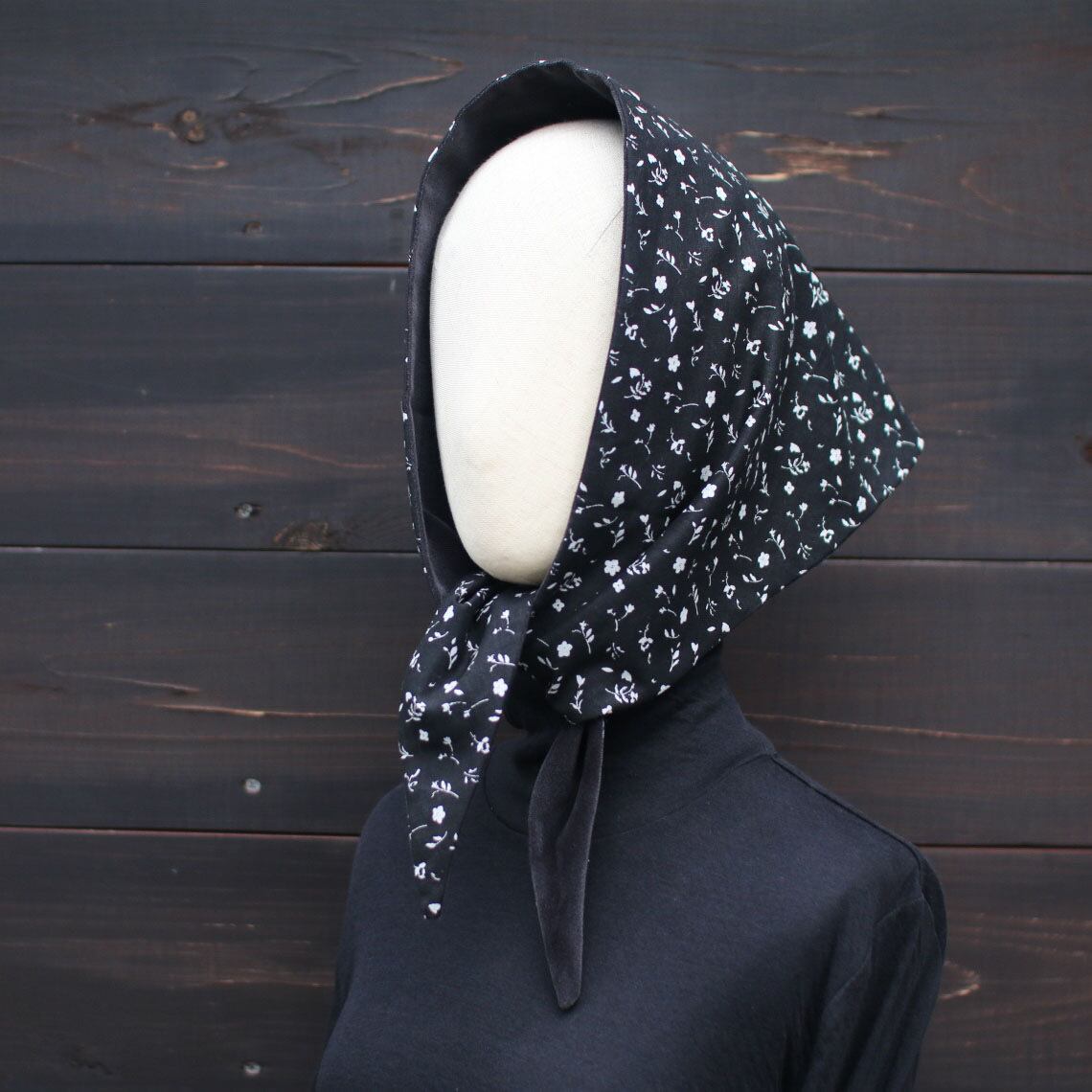 A-Na_ヘアスカーフ/チャコール別珍&mini flower BLACK