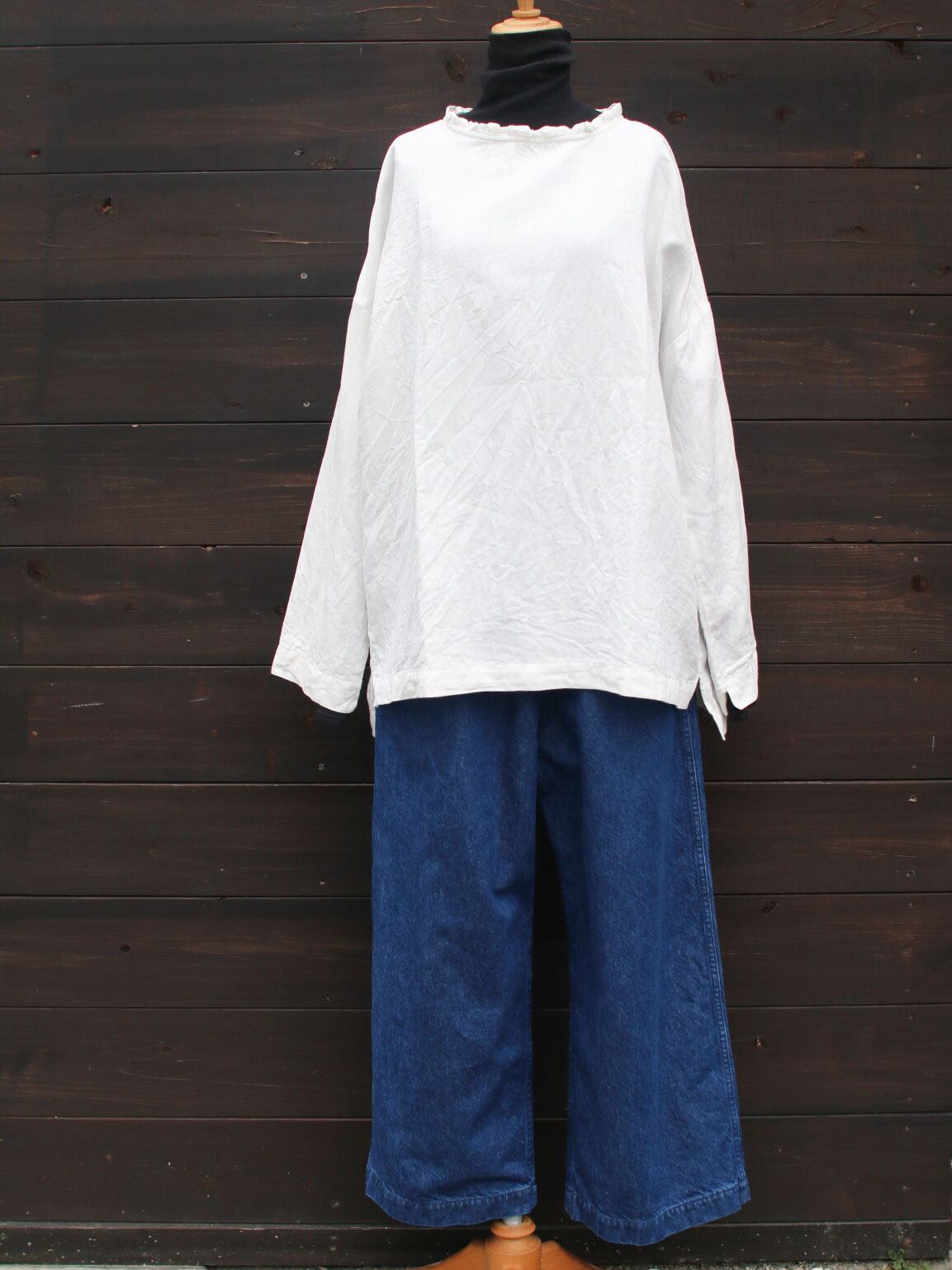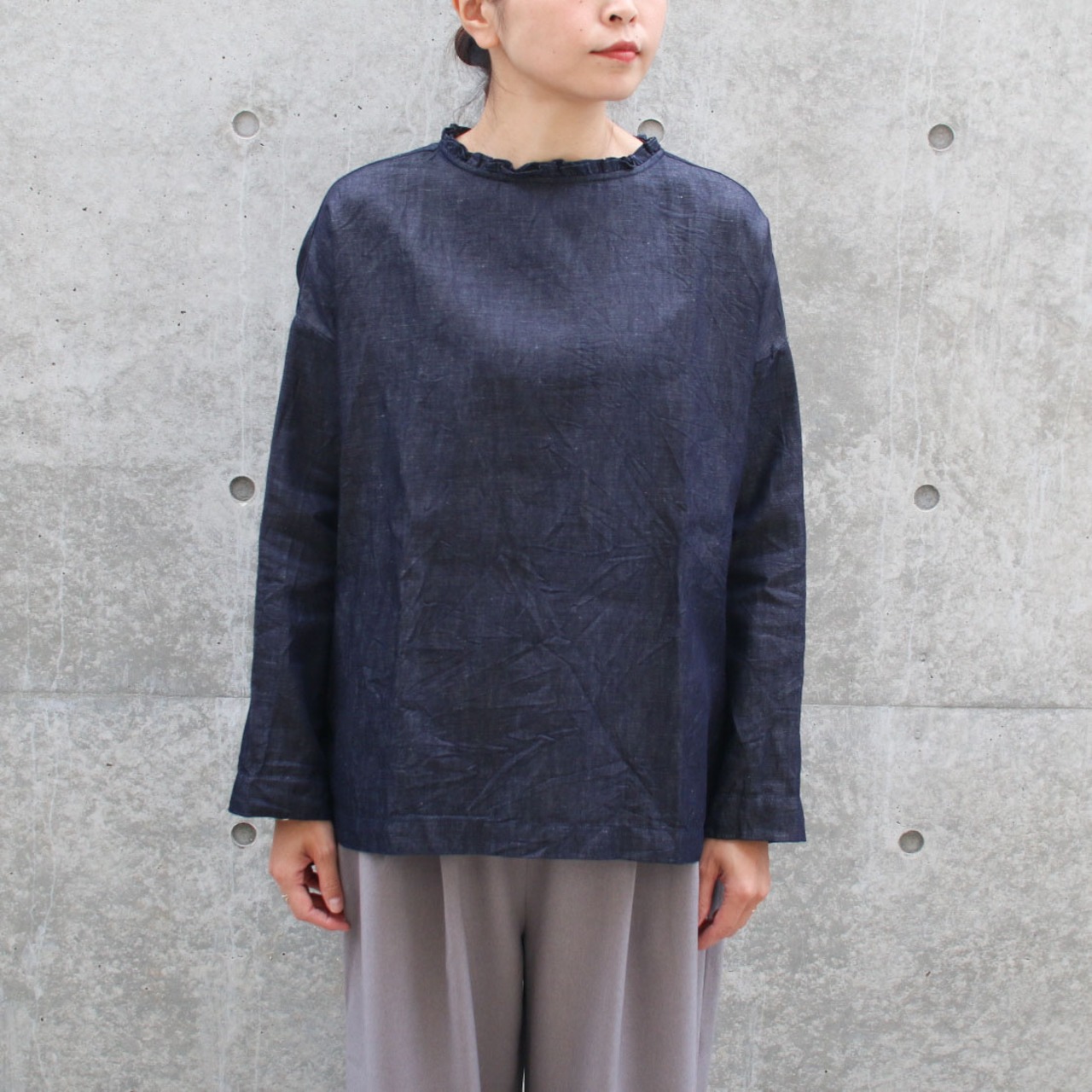 Gauze# でもよく展開しているコットンリネンデニムを使用したプルオーバーブラウスです。