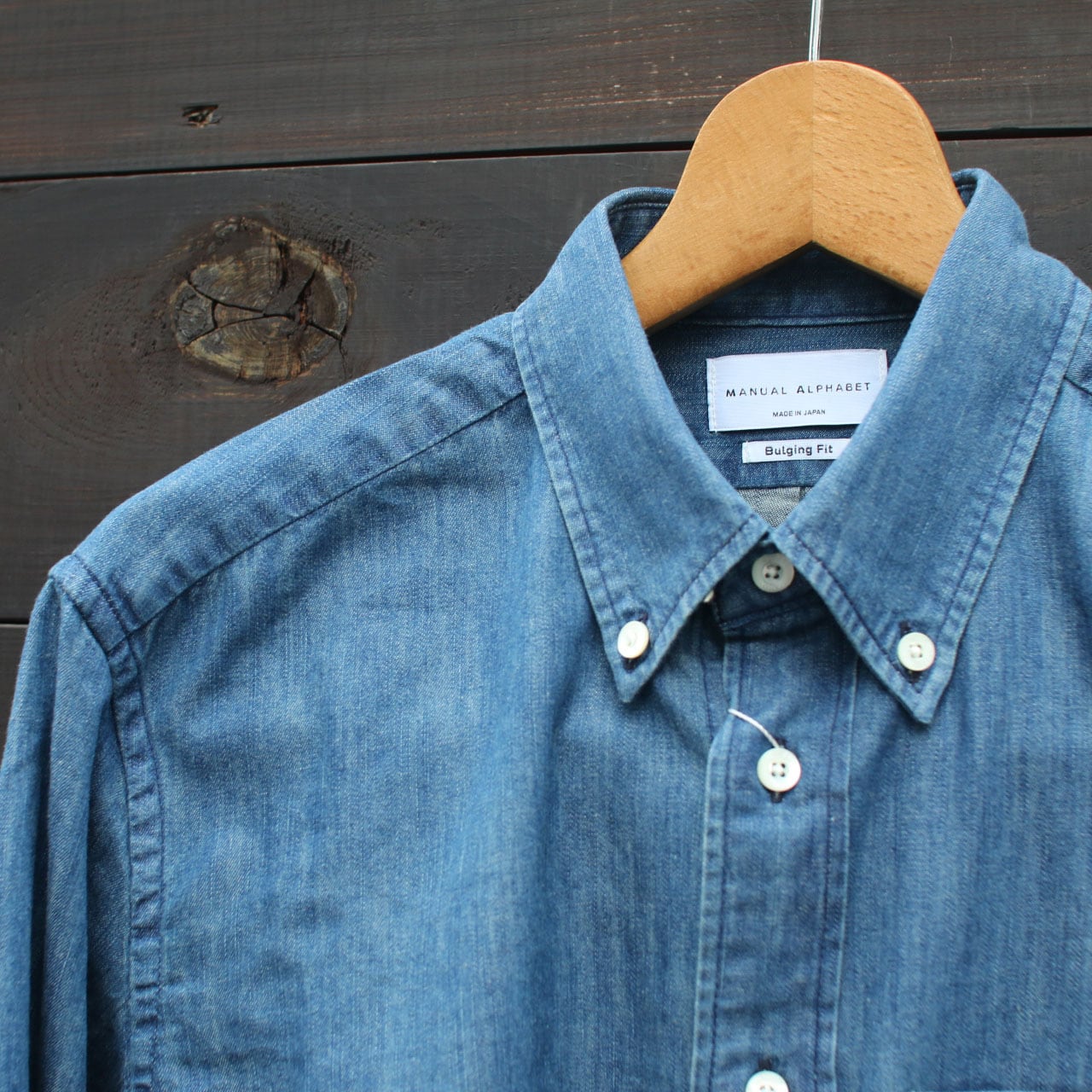 6ozのムラ糸インディゴデニムを使用したボタンダウンシャツ。