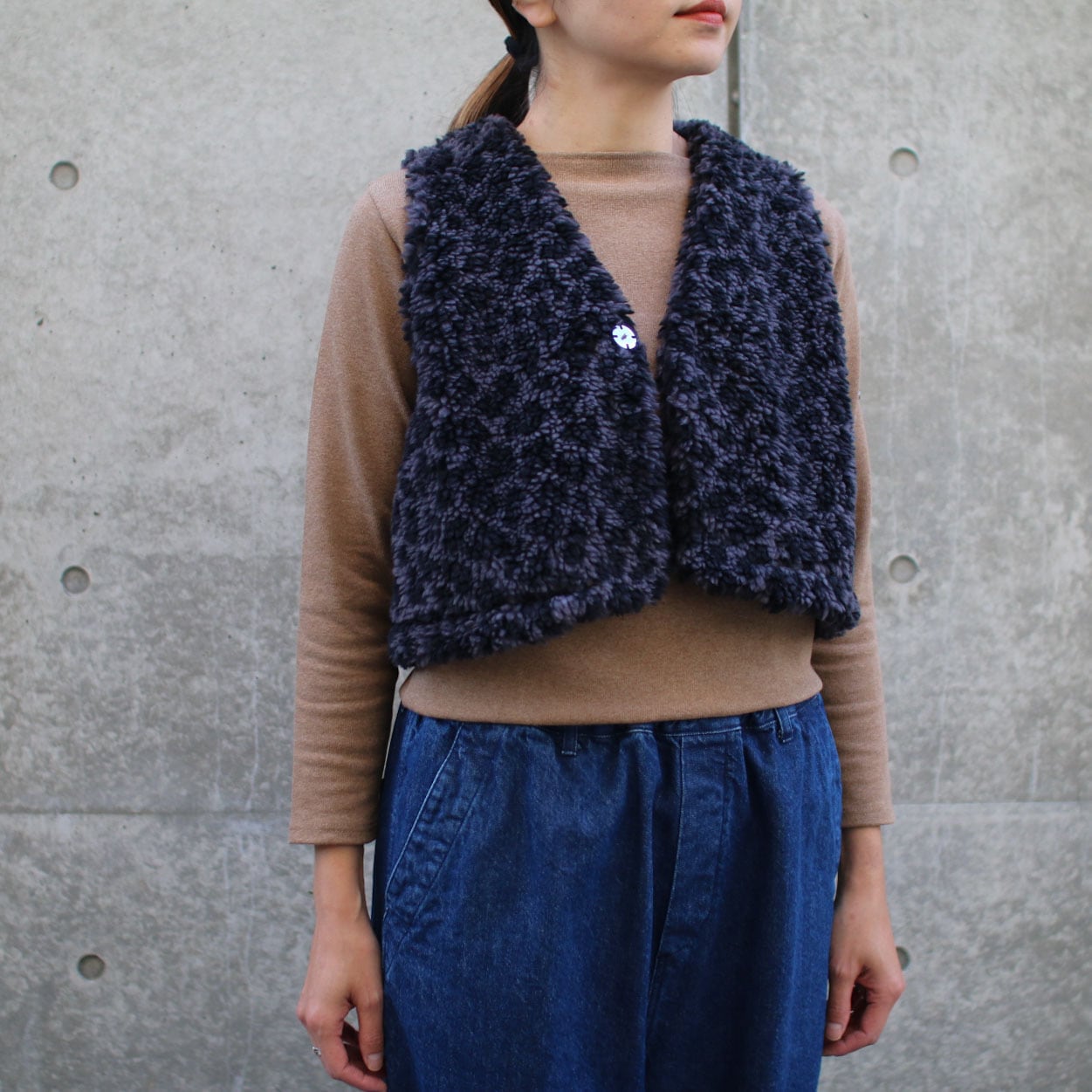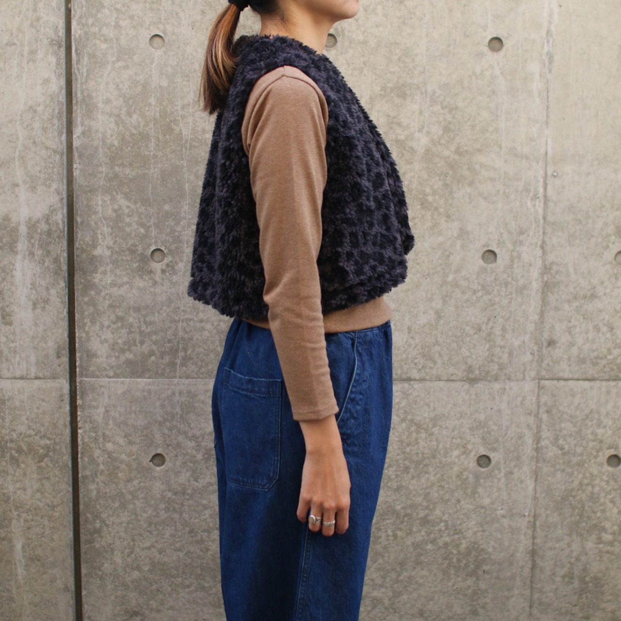 UNIVERSAL TISSU/UNIVERSAL SEVEN_PA253CT026 ボアVネックミニベスト/col:モノクロレオパード
