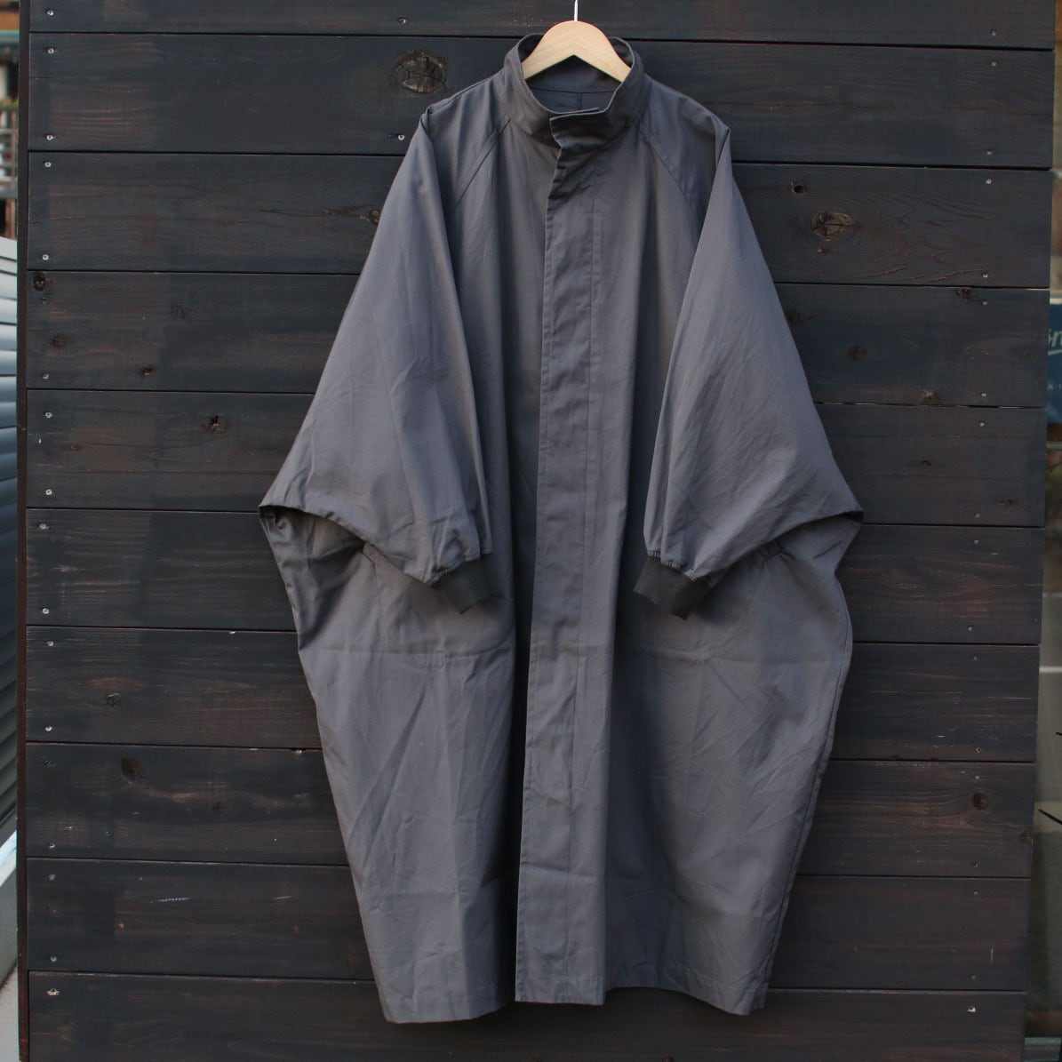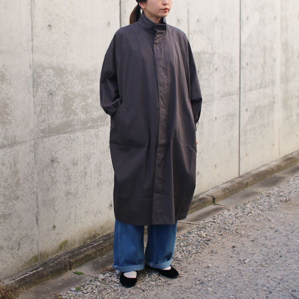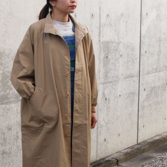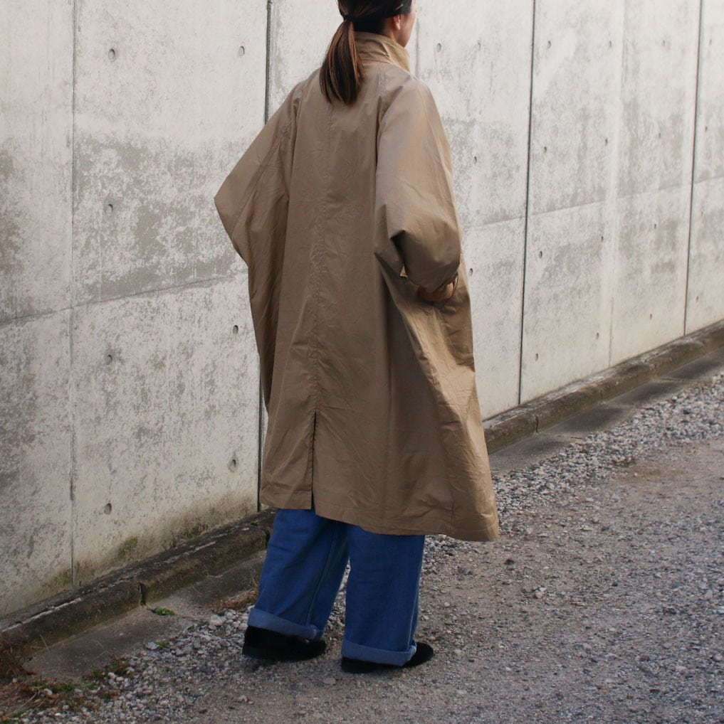 LABORATORYより届きました。身幅たっぷり、ラグランのドルマンスリーブもたっぷりめにまさにムササビ!着丈も長め、綿ギャバのコートをご提案です。