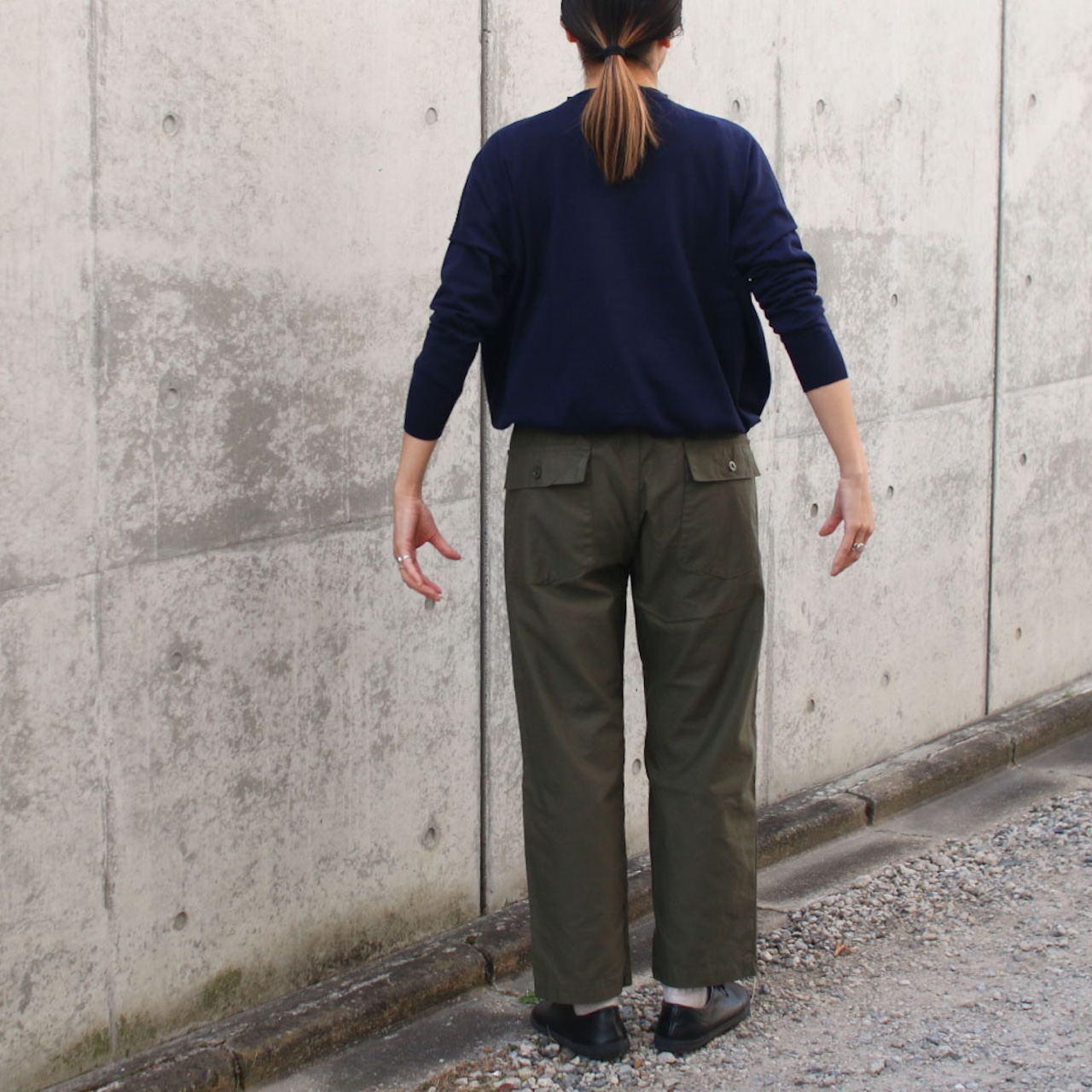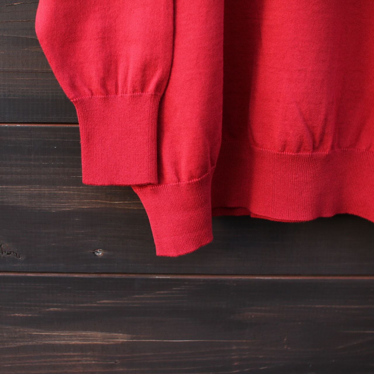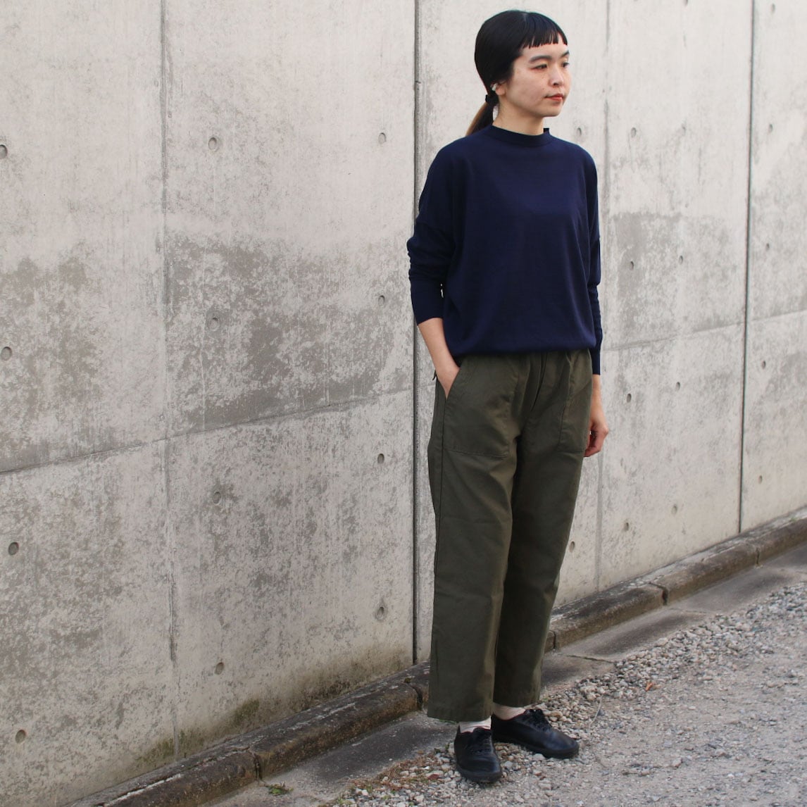 ホールガーメントで、裾のリブを内側に折ると自然な膨らみができ、パンツとのバランスも良くなります。タックインももちろんOK