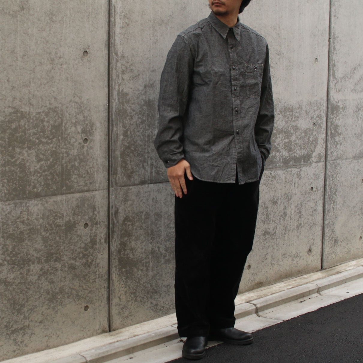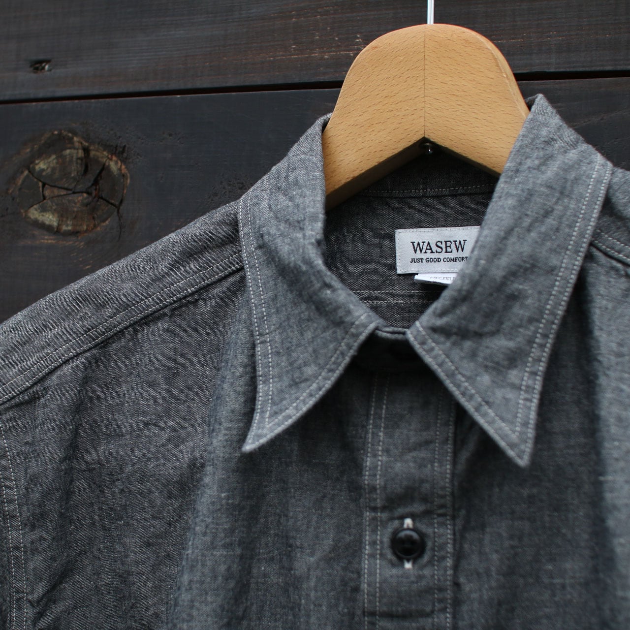 個性派ヴィンテージシャツとして知られる「BIG YANK」の“ガチャポケ”をサンプリング。特徴的なデザインを活かしつつ、余分を削ぎ落とし、日常に馴染むバランスへと再構築しました。コットンリネンのシャンブレー生地は清涼感があり、真夏でも快適。ホワイトステッチが爽やかさを引き立て、ワークの無骨さと日常の軽やかさを両立した一着です。