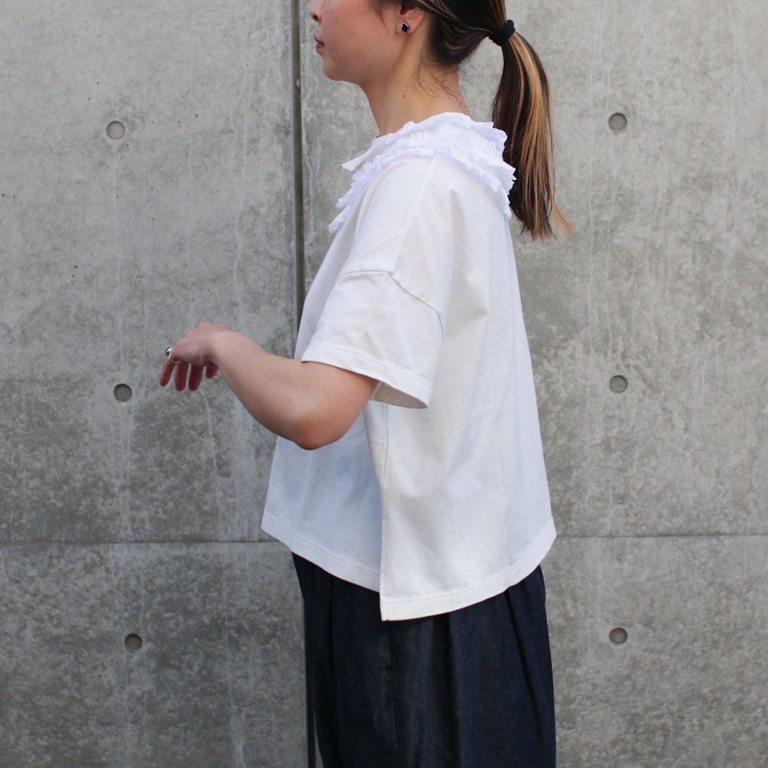 UNIVERSAL TISSU_UNIVERSAL SEVEN クラシック天竺ネックフリルTシャツ/col:シロ/size:1