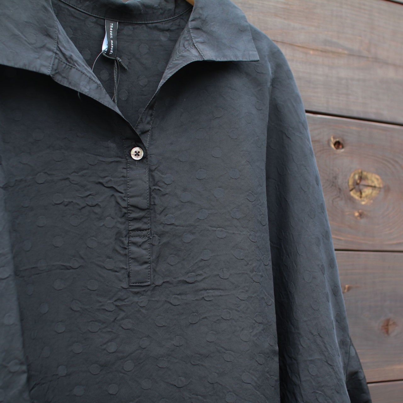 TRAVAIL MANUEL_キュプラドットスキッパーシャツ/col:BLACK/size:F
