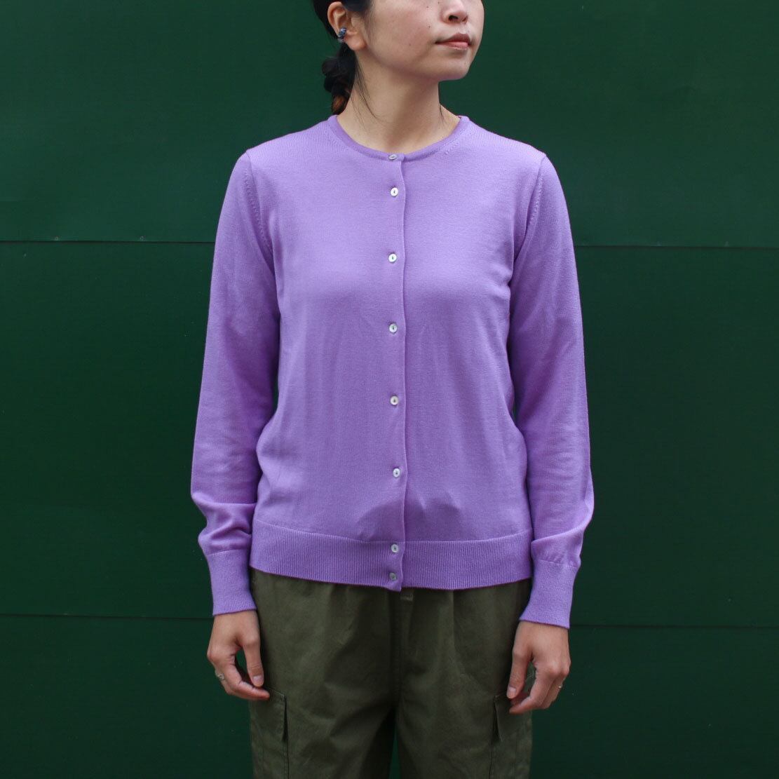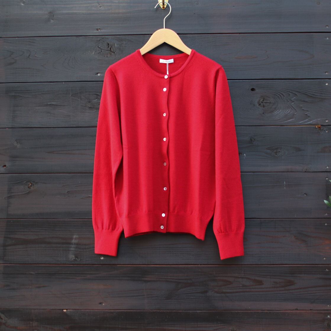 ベーシックなカーディガンです。上質なオーストラリア産のエクストラファインメリノウール100%。滑らかで着心地の良い肌触りが魅力です。貝ボタンで品も感じられます。