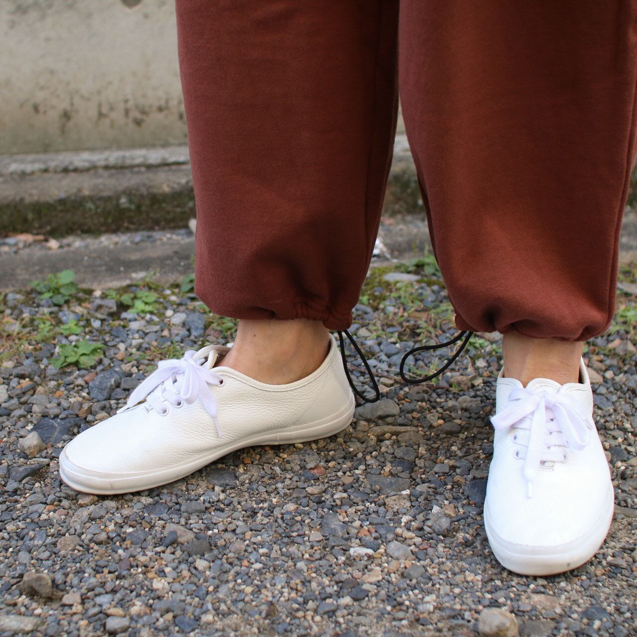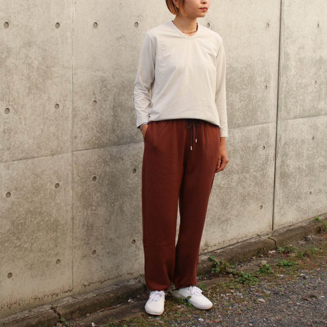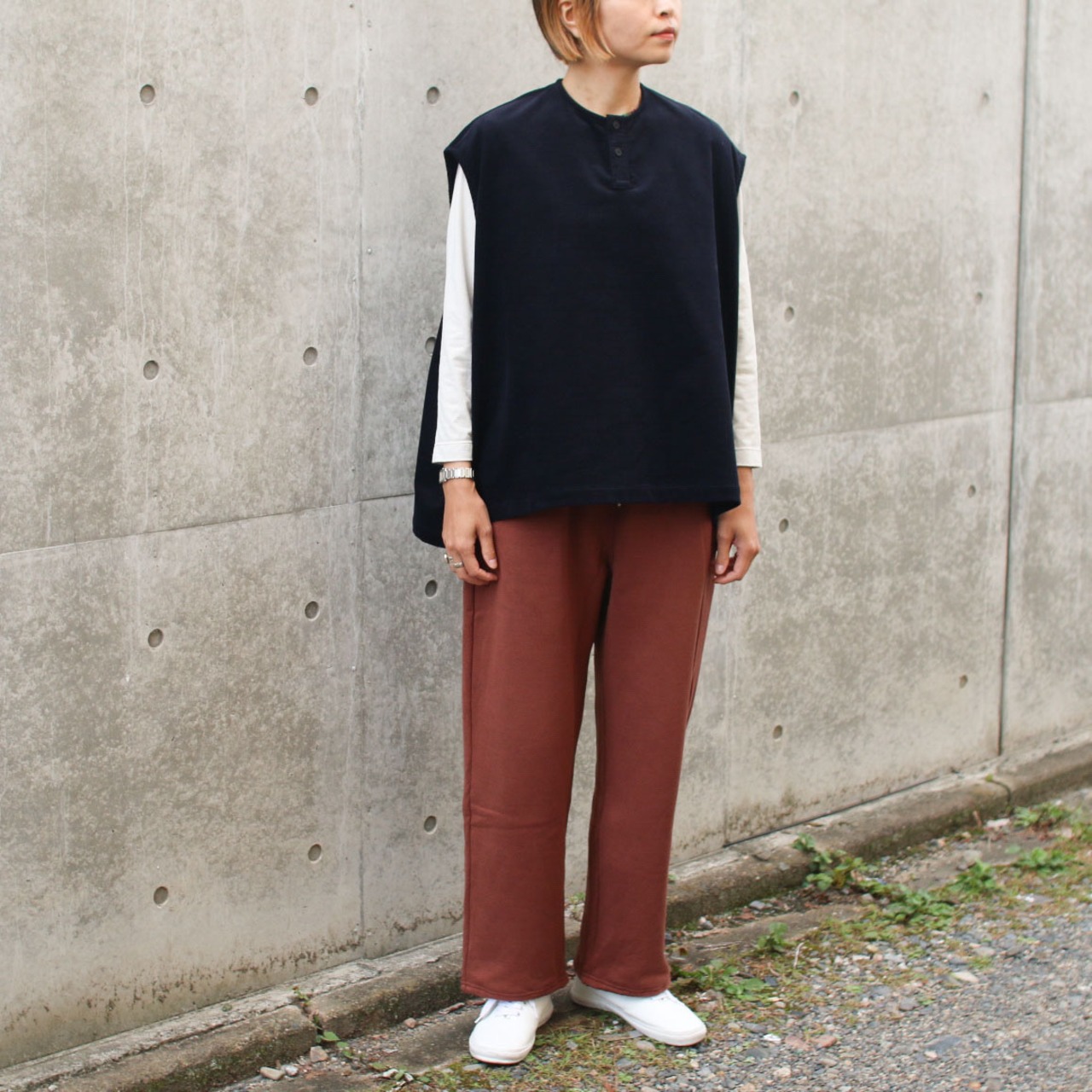試着した時の気持ちよさが忘れられません。ヒップやわたり幅は比較的ゆとりがありますが、きれいに穿けるスウェットパンツ。真っ直ぐ立った時にストンと落ちるシルエットをイメージされたそうです。