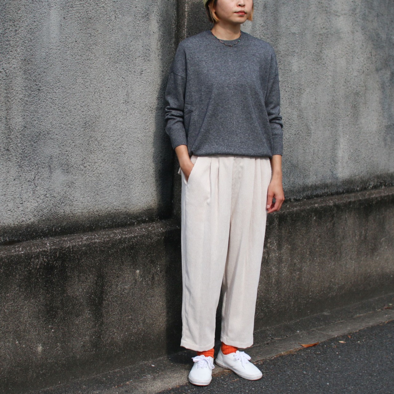 お色は杢調のグレーとブラック。ノーコンらしいシルエットですがシンプルなデザインで、一枚でもジャケットのインナーにも使いやすいですよ◎