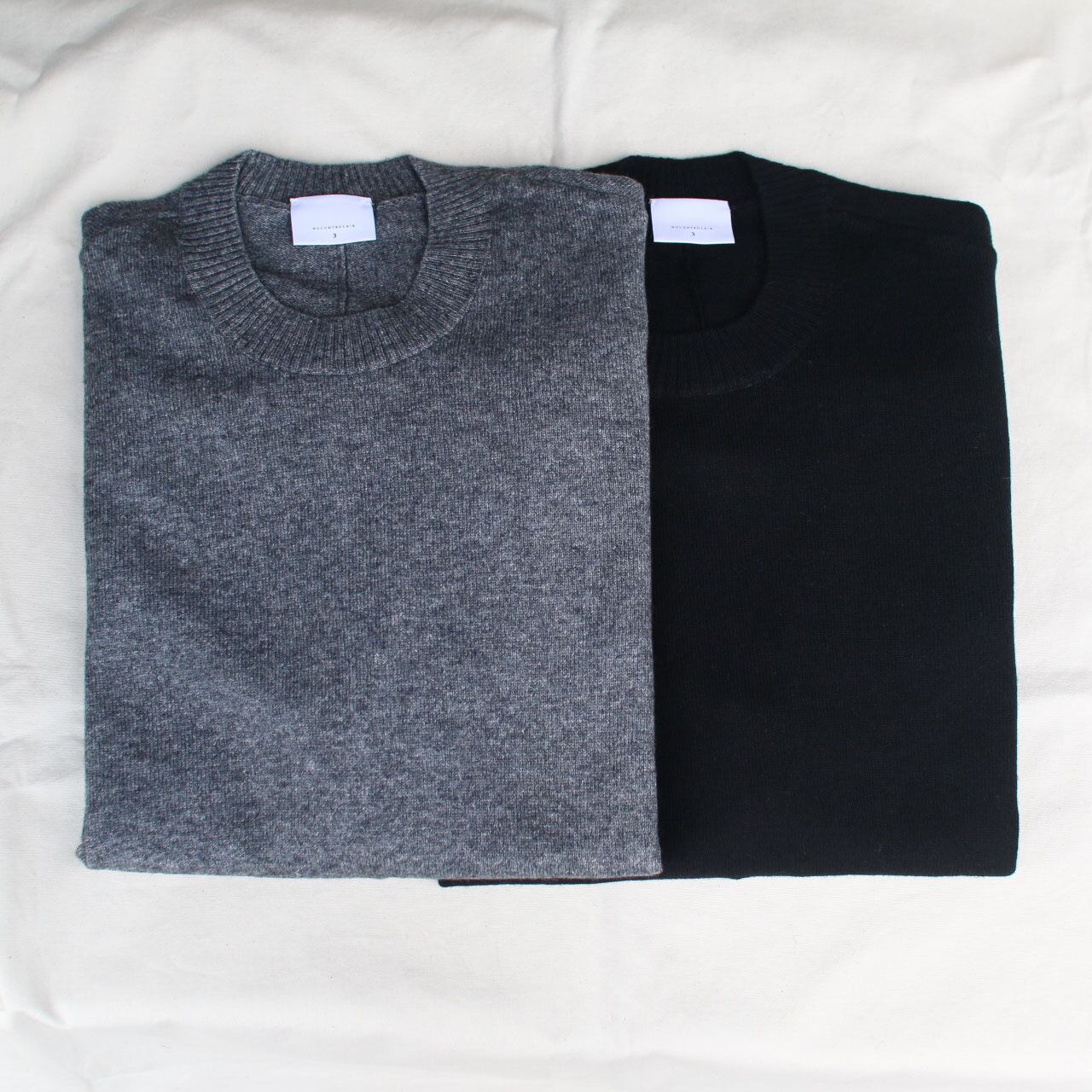 今期はなんと、ノーコントロールエアーからセーターが登場しました〜。もちろん今までもセーターは何度かあったのですが、素材やニットのゲージや形もベーシックで非常におすすめです!