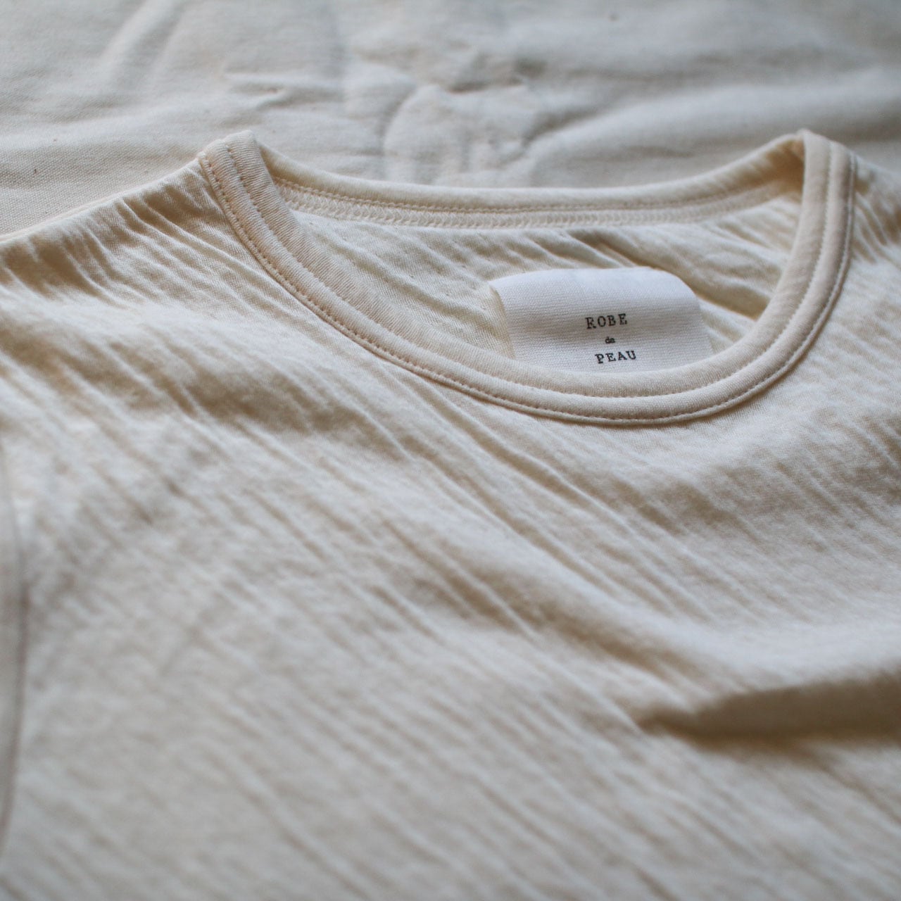 インドで栽培された超長綿はシルクのような光沢と柔らかさ。手摘みで収穫するため天然の油分が失われず、しっとりしていてふんわりやさしい肌触りが特徴の接結生地です。